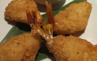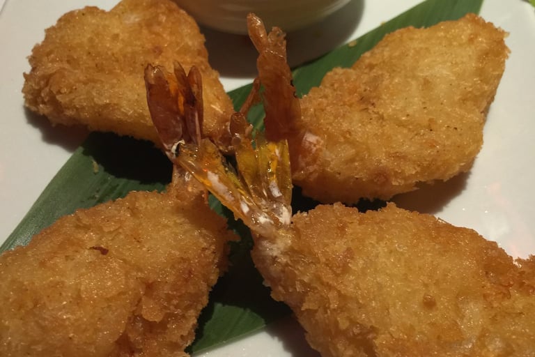 Gamberi fritti impanati con panko a farfalla (max 1 porzione)