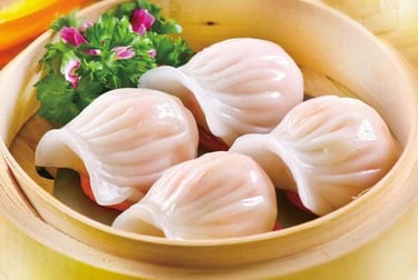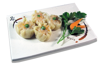 ravioli a sacottino con gamberi e carne di maiale al vapore ( max 1 porzione )
