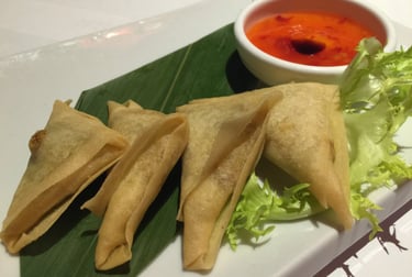 saccottini fritti triangolari con verdure al curry