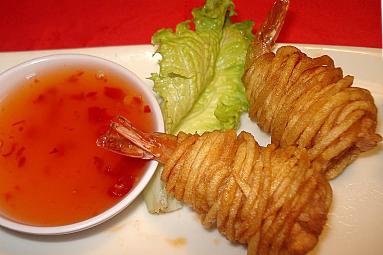 Involtini fritti con gamberi