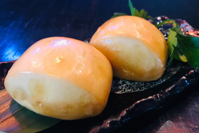 ravioli di gamberi al vapore con farina di patata