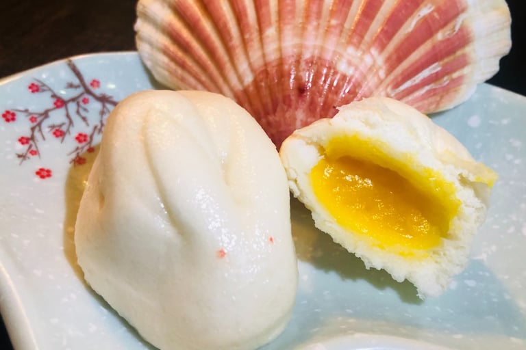 Pane al vapore con crema pasticcera a forma di coniglio