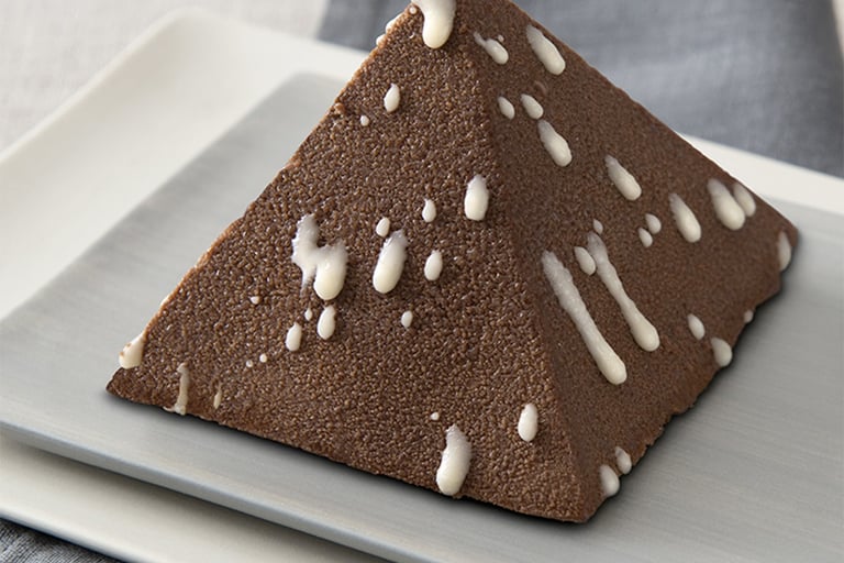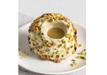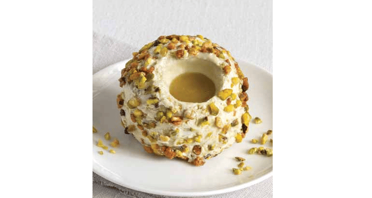 gelato semifreddo al pistacchio con cuore al pistacchio ricoperto con granelli di pistacchio e nocciole