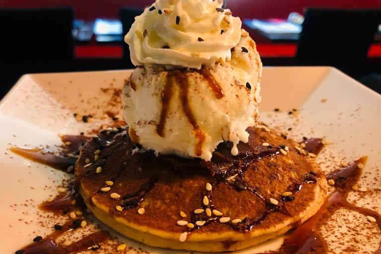 dolce giapponese (pancake) farcito con marmellata di azuki e gelato