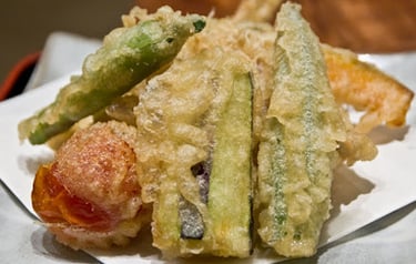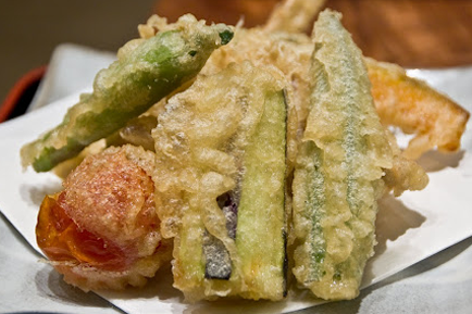 verdure fritte in tempura accompagnate con salsa agrodolce