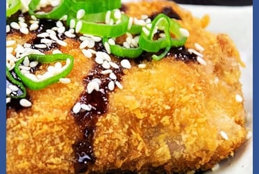 cotoletta di maiale fritto, uova, panko, sesamo, salsa teriyaki