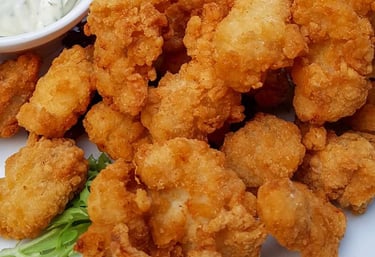 bocconcini di pollo fritto, uova, panko accompagnate con salsa agrodolce