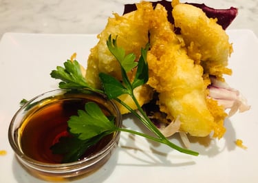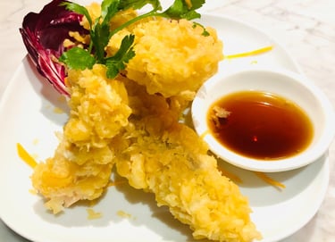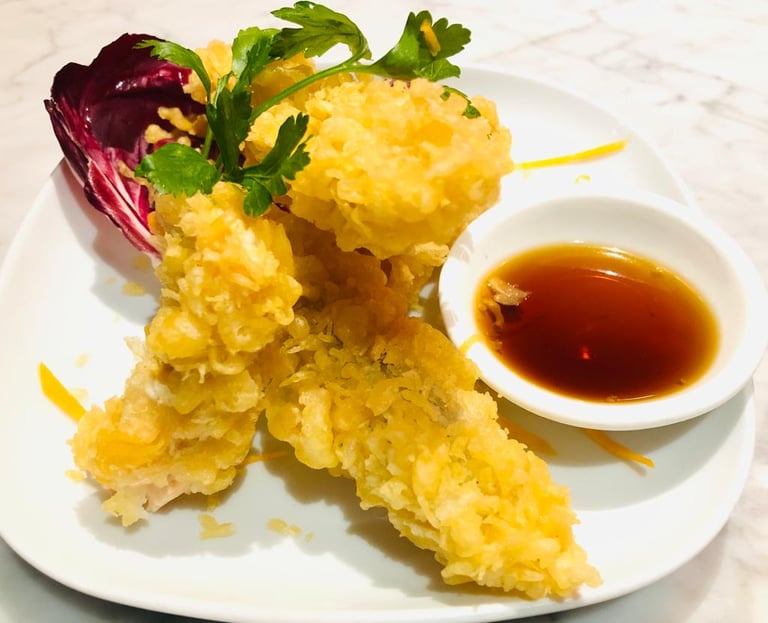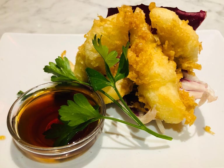 frittura di pesce misto in tempura, uovo, panko accompagnate con salsa agrodolce
