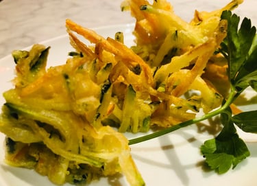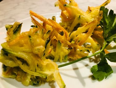 verdure miste alla Julienne in tempura accompagnate con salsa agrodolce