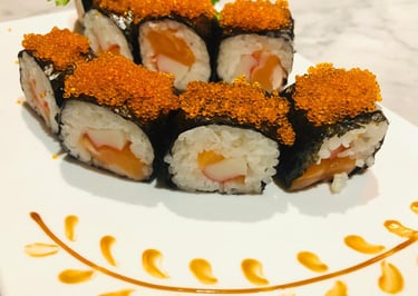 Salmone scottato, surimi, philadelphia in frittura con salsa teriyaki