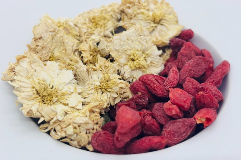 TÈ VERDE AL CRISANTEMO CON BACCHE DI GOJI GRANDE
