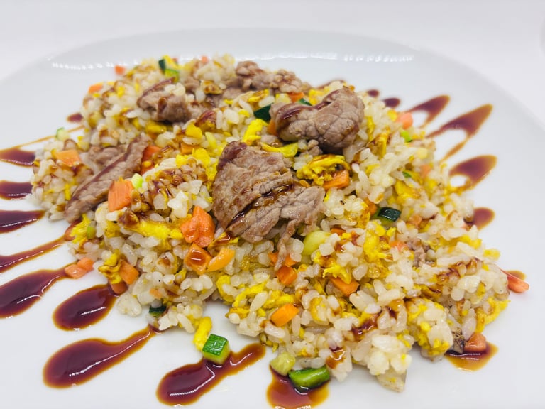 riso saltato con manzo, verdure, uova