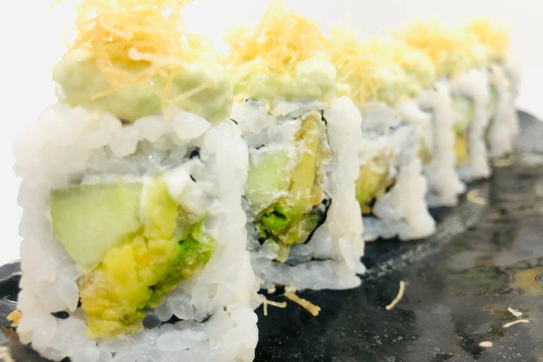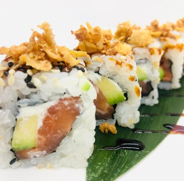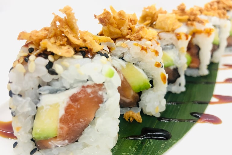patatine, tartar di salmone crudo, avocado, philadelphia, tobiko, sesamo, salsa leggermente piccante