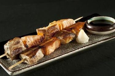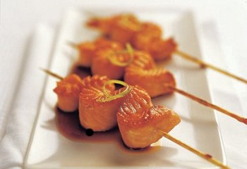 spiedini di salmone alla piastra, salsa teriyaki