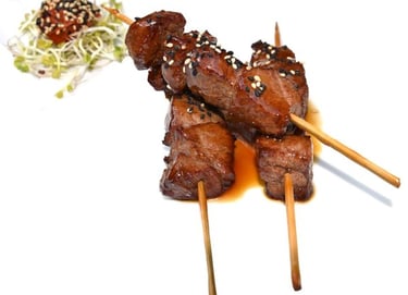 spiedini di manzo alla piastra, salsa teriyaki