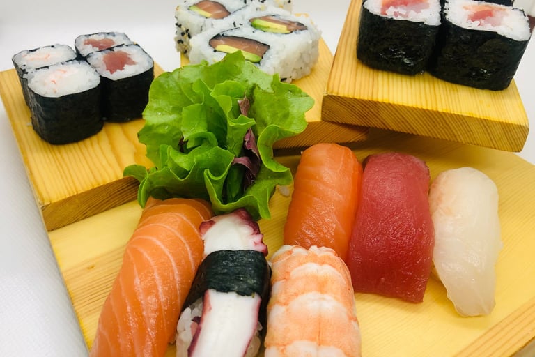 a scelta dello chef 4 hosomaki 4 uramaki 4 futomaki 6 nigiri